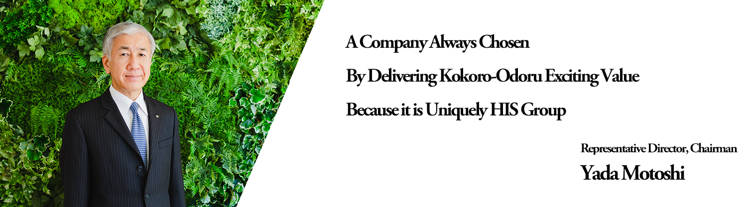 Guided by our founding commitment to "Seeking World Peace" and the HIS Group Purpose, "Unleashing the Excitement (Kokoro-Odoru)," we will harness our collective strengths to deepen our social contribution. Moving forward, we will create agile, bold, and large-scale "aggressive business" initiatives, challenging ourselves to pioneer new value that contributes to a brighter future.
