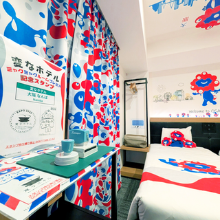 変なホテル大阪 なんば、変なホテル大阪 心斎橋は、大阪・関西万博の公式キャラクター『ミャクミャク』とコラボした「ミャクミャクコラボルームプレミア」の販売期間を2026年5月6日のご宿泊まで延長することに伴い、客室内にホテルオリジナルの『ミャクミャク』スタンプ台を設置します。「ミャクミャクコラボルームプレミア」は、壁や天井を『ミャクミャク』で装飾した、『ミャクミャク』に囲まれてお過ごしいただける客室です。ご宿泊のお客様には、ホテルオリジナルデザインのサコッシュ、ルームキーを模したカードをプレゼントします。価格は、朝食付き26,540円~、素泊まり25,000円~(いずれも1室1泊、税サ込)。※スタンプは「ミャクミャクコラボルームプレミア」にご宿泊のお客様限定で、「2025 大阪・関西万博オフィシャルストアDEスタンプラリー」とは異なる変なホテルオリジナルとなります。