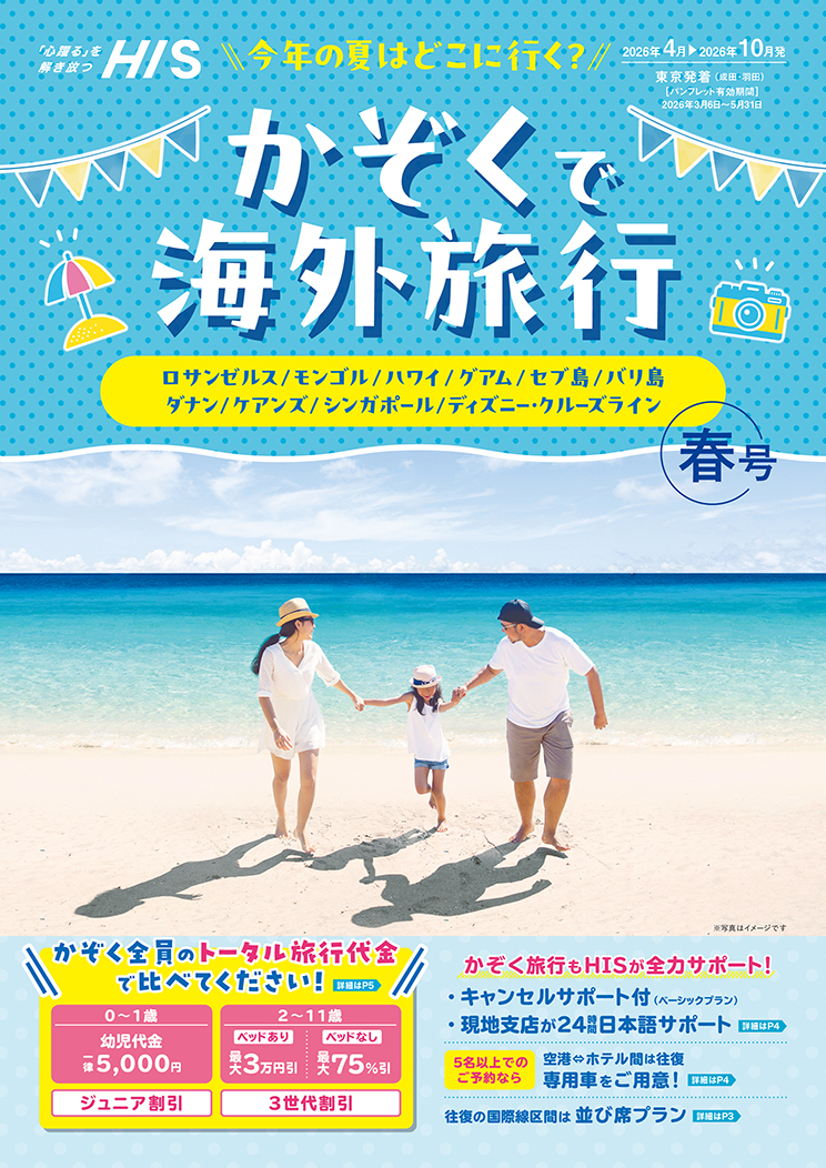 株式会社エイチ・アイ・エス(本社:東京都港区 以下、HIS)は、3月6日(金)より、「夏先ドリキャンペーン」を開始します。また、キャンペーンにあわせて家族旅行専用パンフレットの販売も開始します。