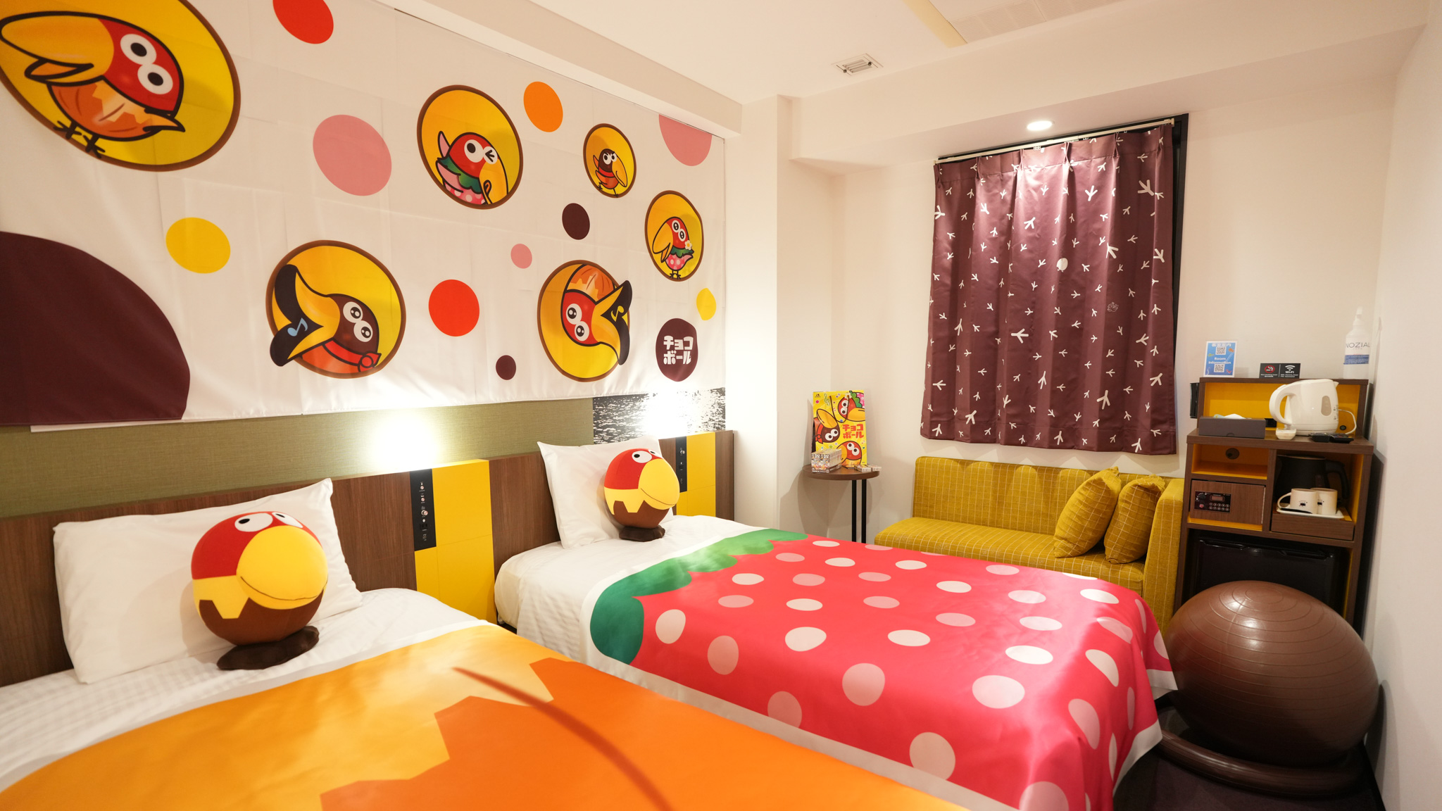 単にテーマの世界観を作るだけでなく、滞在中にそのコンテンツに対する知識を増やしていただける機会も取り入れています。例えば「チョコボールルーム」では、チョコボール誕生の1960年代からの歴史を学んだり、チョコボールの持つおいしさ・楽しさを体験していただくことで、お客様の見識を広げる機会を提供しています。チョコボールは歴史が深く、強固なブランディングを持つため、世界観の構築には時間を要しましたが、その分お客様にも支持され、人気のコラボルームのひとつになっています。単なる宿泊を「知的好奇心を満たす学びの場」へと昇華させることで、コンテンツへの愛着をさらに深めていただくことを目指しています。